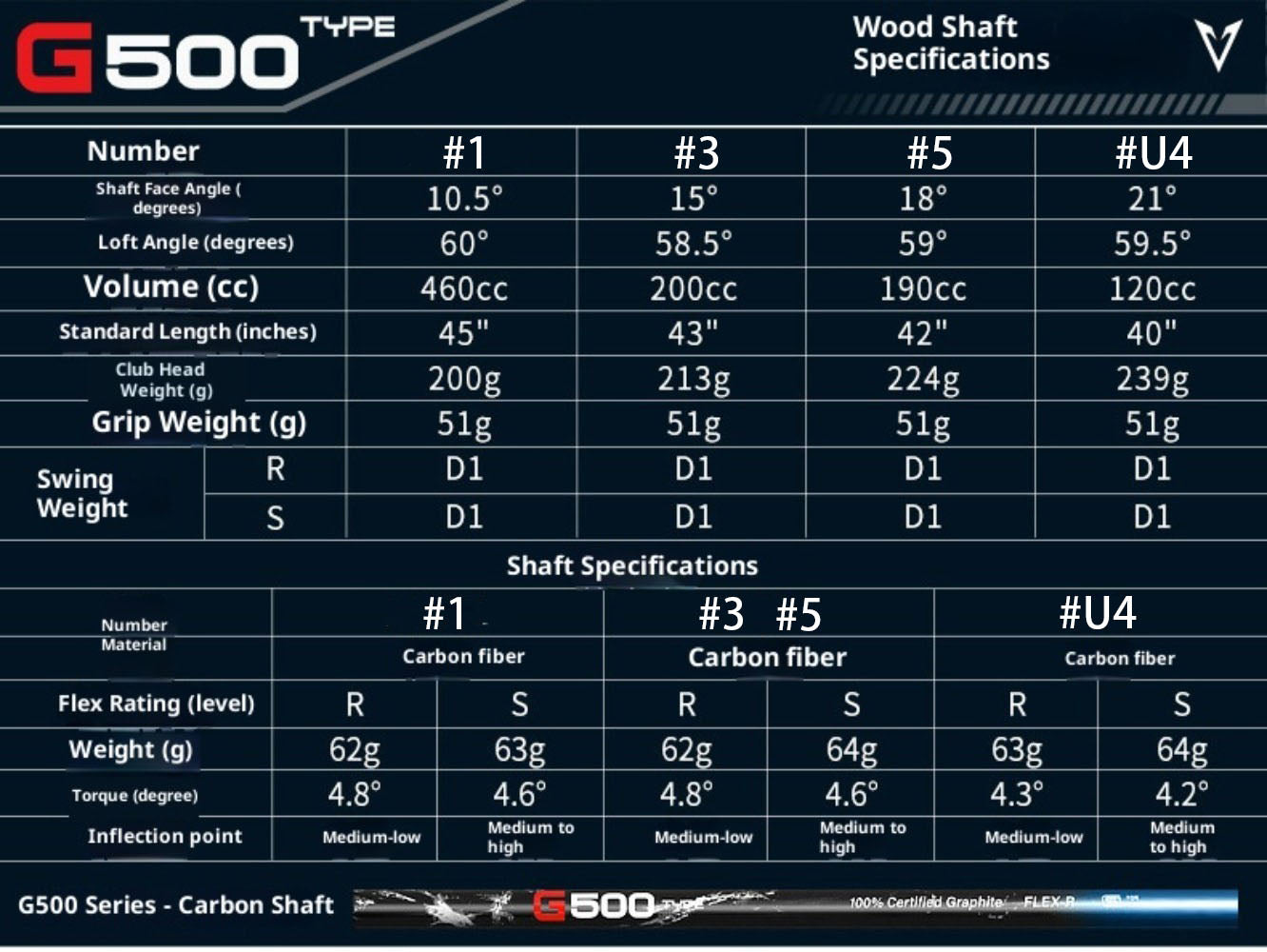 PGM #1/3/5/U4 Golf Club Wooden Rod Men Right Hand High Loft 10.5-21 Degree R/S Grade Graphite Shaft Pole Fairway Woods