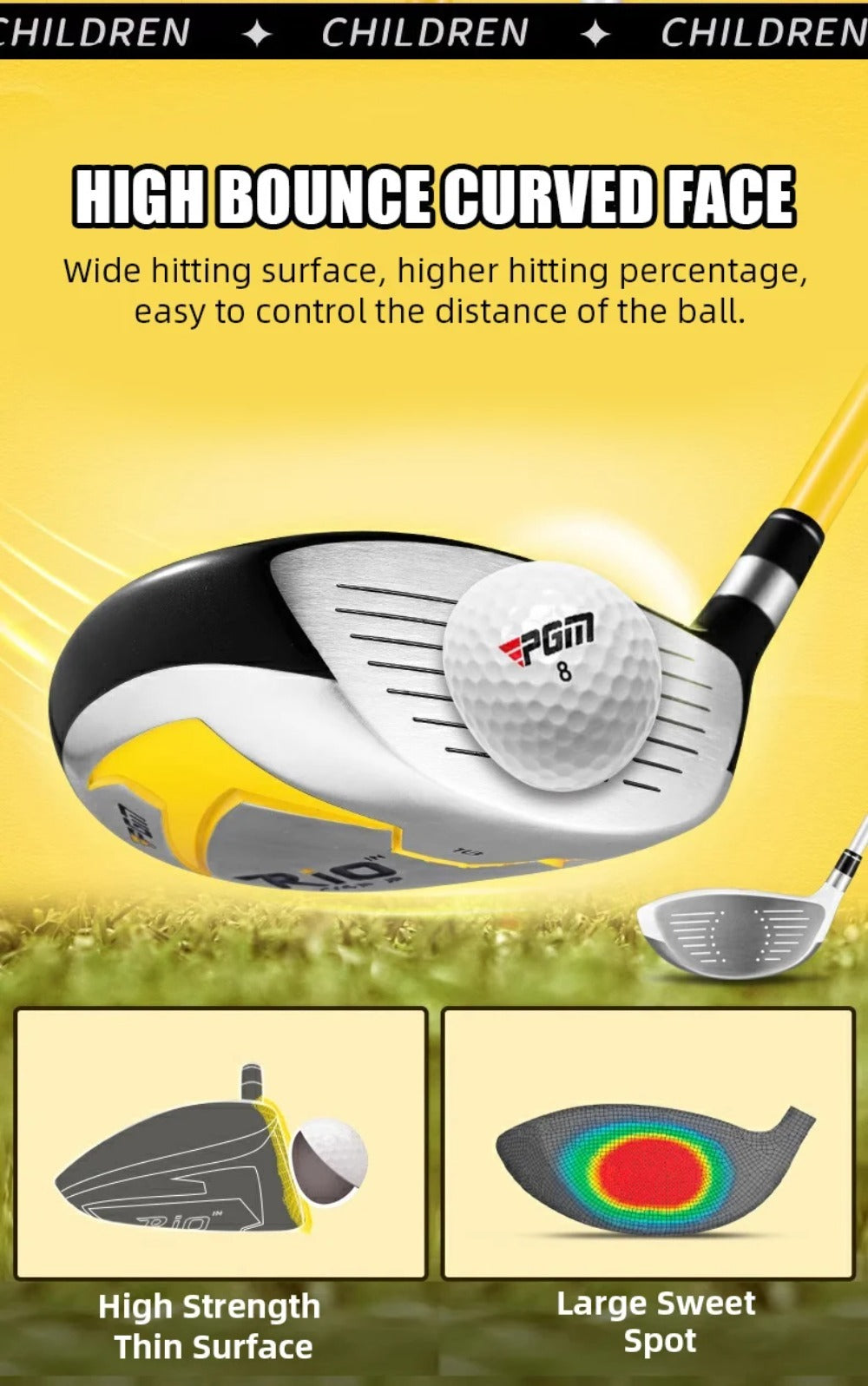 3. 360CC ALLOY GOLF DRIVER The lighter head is designed for children's strength, allowing for a larger sweet spot area and an easier swing